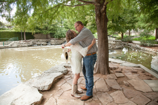 La Gloria Waterfall is located in downtown San Antonio, Texas. Tucked away behind the Pearl Brewery, this quiet area is perfect for a wedding and great for exploring after the ceremony. The Historic Pearl District includes the Pearl Brewery and lots of shops and food places. It’s home of a farmer’s market every Saturday & Sunday. Hotel Emma is a beautiful place to spend the night and puts you in walking distance of some fantastic restaurants including Brasserie Mon Chou Chou, La Gloria, and Best Quality Daughter.  A short drive away is the San Antonio Museum of Art and for great drinks stop by Elsewhere Garden Bar & Kitchen.