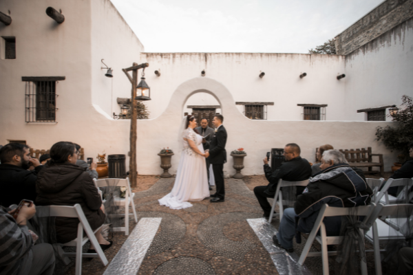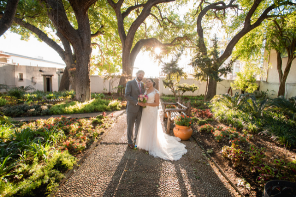 The Spanish Governor’s Palace presents the perfect setting for your wedding in their Main Courtyard centered within lush grounds and a beautiful fountain. Providing a traditional Spanish colonial setting, the courtyard is surrounded by stucco stoned walls and has a patio with open arches. Elegant and enchanted, it features a rich garden, a large fountain, a historic wishing well, sitting benches, and a mosaic walking path. This all-outdoor venue gives off a true Spanish vibe your guests will remember!